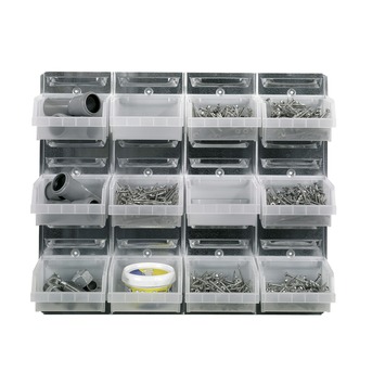 Geen ruimte meer om je gereedschap in een kast of koffer op te bergen? Gebruik dan dit geperforeerde wandpaneel Raaco incl 12 bakjes om je gereedschap op te hangen. Zo hang je je gereedschap overzichtelijk aan je muur. De geperforeerde platen met sleuven maken het mogelijk om de bakjes op te hangen. Het opbergsysteem bestaat uit 2 wandpanelen met 12 bakjes. De bakjes zijn stuk voor stuk voorzien van een label zodat het paneel opgeruimd en georganiseerd blijft. De labels zijn ook apart verkrijgbaar. Opgeruimd staat netjes!
