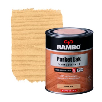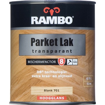 Rambo interieurlak transparant kleurloos hoogglans 750 ml is een transparante interieurlak voor een nette afwerking binnenshuis. Het product is speciaal geschikt voor meubels, kozijnen, deuren en betimmeringen. Rambo interieurlak is verkrijgbaar in verschillende inhoudsmaten, dekkende kleuren en transparante kleuren, waaronder Rambo interieurlak transparant kleurloos hoogglans 750 ml.