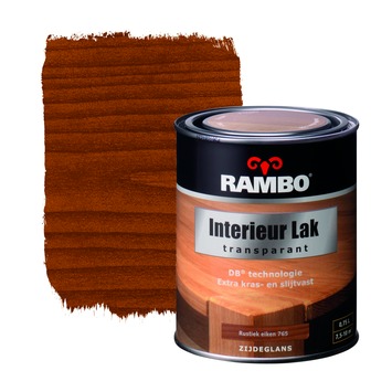 Rambo interieurlak transparant rustiek eiken zijdeglans 750 ml is een transparante interieurlak voor een nette afwerking binnenshuis. Het product is speciaal geschikt voor meubels, kozijnen, deuren en betimmeringen. Rambo interieurlak is verkrijgbaar in verschillende inhoudsmaten, dekkende kleuren en transparante kleuren, waaronder Rambo interieurlak transparant rustiek eiken zijdeglans 750 ml.