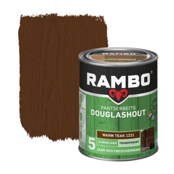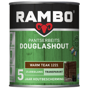 Met Rambo Pantserbeits Douglashout zijdeglans transparant warmteak 750 ml bescherm je douglashout in de tuin tegen verschillende weersinvloeden. Deze watergedragen buitenbeits is geschikt voor douglashouten onderdelen zoals schuttingen, pergola’s, overkappingen en andere constructies van douglashout. De beits beschermt het hout tot 5 jaar tegen regen, zon en wind.