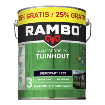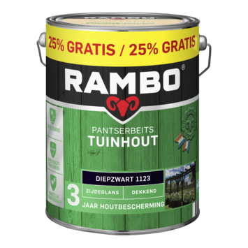 Met Rambo Pantserbeits Tuinhout zijdeglans dekkend diepzwart 5 liter bescherm je houten onderdelen in de tuin tegen verschillende weersomstandigheden. Deze terpentinegedragen buitenbeits is geschikt voor tuinhout zoals pergola’s, speeltoestellen, borders, carports, prieeltjes, schuren en plantenbakken. De beits beschermt het hout tot 3 jaar.