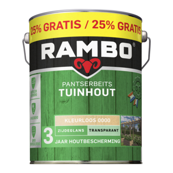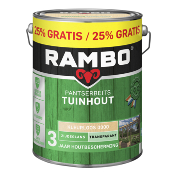 Met Rambo Pantserbeits Tuinhout zijdeglans transparant kleurloos 5 liter bescherm je houten onderdelen in de tuin tegen verschillende weersomstandigheden. Deze terpentinegedragen beits is geschikt voor buitengebruik en wordt toegepast op tuinhout zoals pergola’s, speeltoestellen, borders, carports en prieeltjes. De beits beschermt het hout tot 3 jaar.