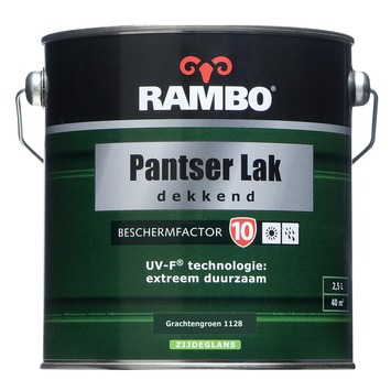 Rambo pantserlak grachtengroen zijdeglans 2,5 liter is een dekkende duurzame lak voor uitstekende afwerking van het hout aan uw huis. De zijdeglans lak is speciaal geschikt voor deuren, daklijsten, kozijnen en gevelbetimmeringen. Rambo pantserlak is verkrijgbaar in verschillende inhoudsmaten en dekkende kleuren, waaronder Rambo pantserlak grachtengroen zijdeglans 2,5 liter.