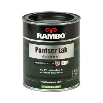 Rambo pantserlak grachtengroen zijdeglans 750 ml is een dekkende duurzame lak voor uitstekende afwerking van het hout aan uw huis. De zijdeglans lak is speciaal geschikt voor deuren, daklijsten, kozijnen en gevelbetimmeringen. Rambo pantserlak is verkrijgbaar in verschillende inhoudsmaten en dekkende kleuren, waaronder Rambo pantserlak grachtengroen zijdeglans 750 ml.
