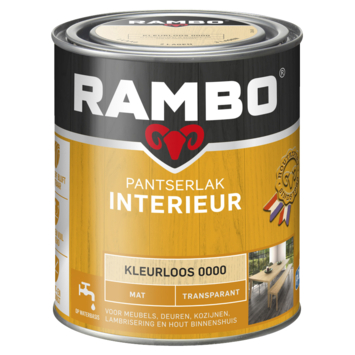Deze stevige transparante lak is dankzij de gepatenteerde DB® technologie extra kras- en stootvast. Dit maakt dat deze lak bijzonder geschikt is voor schilderwerk dat tegen een stootje moet kunnen. Rambo Pantserlak Interieur is geurarm, vocht- en vuilwerend en geschikt voor meubels, lambriseringen, deuren, kozijnen en hout binnenshuis. Het rendement van dit product is 12 m2 per liter.