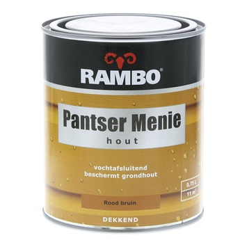 Rambo pantsermenie roodbruin 750 ml creëert een vochtafsluitende laag voor grondhout, palen en omkante deuren en kozijnen. Een uitstekende bescherming voor al het tuinhout. De inhoudsmaat is 750 ml.