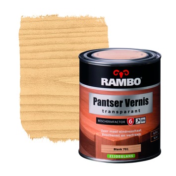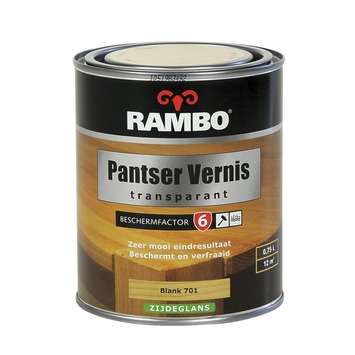 Rambo pantservernis kleurloos zijdeglans 750 ml is een kleurloze, hoogglans vernis en zorgt voor een goede houtafwerking. Het geeft al uw hout binnen in huis een bescherming met een bolle glans. Het is geschikt voor meubels, kozijnen, deuren en betimmeringen. De inhoudsmaat is 750 ml.