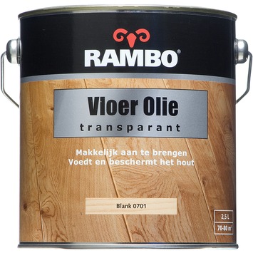 Rambo vloerolie kleurloos 2,5 liter is een verzorgende olie voor vloeren en ideaal voor houtsoorten met een open structuur of houtsoorten die al zijn behandeld met wasolie. Rambo vloerolie is geschikt voor vloeren, vloerdelen en betimmeringen. De inhoudsmaat is 2,5 liter.