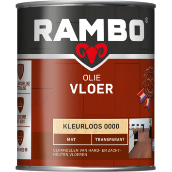 Rambo rambo vloer olie tr mat kleurloos kleurloos 750 ml voedt en verzorgt houten vloeren binnenshuis; trekt diep in het hout en beschermt tegen vuilinloop. Geef je houten vloer een mooie natuurlijk uitstraling met Rambo vloer olie. Accentueert de houtnerftekening en behoudt de natuurlijke uitstraling van het hout. Het rendement van dit product is 25 m2 per liter.