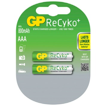 U zit nooit meer zonder power dankzij deze GP ReCyko AAA-batterijen (800 mAh, 1.2Volt). De batterijen zijn tot maar liefst duizend keer herlaadbaar! U hoeft zich geen zorgen te maken om zelfontlading. De ReCyko batterijen verliezen zeer weinig stroom tijdens inactiviteit. Deze plug-and-play batterijen kunt u gelijk uit de doos gebruiken.
