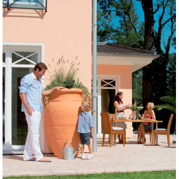 Als je het water uit de regenton gebruikt in de tuin zorg je ervoor dat het schone water niet in het riool terecht komt. Als al het regenwater allemaal in het riool terecht komt moet alles verwerkt worden. Door de klimaatverandering zal het steeds vaker voorkomen dat er tijdens een flinke regenbui zoveel water valt dat het riool dit niet meer kan verwerken. Extra wateropvang in de tuin, door bijv. deze regenton, zorgt ervoor dat al dit water niet in het riool beland en verwerkt hoeft te worden. Hiermee worden veel kosten bespaard. Het regenwater is heel goed voor uw planten omdat het nauwelijks kalk bevat. Omdat het regenwater een andere temperatuur heeft is dit ook beter voor uw planten. Basis regentonnen water kan ook gebruikt worden voor het wassen van de ramen, of de auto. Omdat er geen kalk in het water zit droogt het strak op en ziet u geen vlekken of strepen. Bespaar op de waterrekening en gebruik het opgevangen regenwater. Kortom, met deze authentieke Griekse Amfoor terracotta 250 liter bewaar je op een nostalgische wijze gratis regenwater waarmee je een goede aankoop doet, bespaart je op de kosten van water en draagt je bij aan een beter milieu.