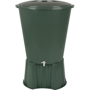 Deze regenton groen conisch 210 liter wordt zeer veel verkocht omdat hij voordelig is en toch een grote inhoud heeft. Daar kun je aardig wat planten mee goedkoop water geven. De ton heeft een kindveilige deksel en een witte aftapkraan die je ook op een Gardena aan kunt sluiten. De conisch groene regenton heeft een diameter van 77 centimeter, een hoogte van 79 centimeter en een inhoud van 210 liter. Het materiaal van de waterton is vrijwel onverwoestbaar. Vorst, regen en dergelijke weersomstandigheden hebben geen vat op deze regenton, wel dien je de regenton leeg te maken bij vorstgevaar. Daarnaast bestaat de ton voor 75% uit gerecycled plastic en beschikt over 1 jaar fabrieksgarantie. Plaats voor extra hoogte onder de regenton een regenton voet zodat je gemakkelijk met een emmer het water uit de kraan kan halen.