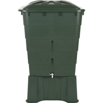 Deze praktische Garantia Regenton rechthoekig groen 300 Liter heeft zoals de naam al zegt een handige vierkantige vorm en een inhoud van maar liefst 300 liter. Daar kun je aardig wat planten mee goedkoop water geven. De ton heeft een kindveilige deksel en een witte aftapkraan die je ook op een Gardena aan kunt sluiten. Deze groene vierkante regenton is mooi compact en kan gemakkelijk tegen een muur geplaatst worden. De regenton heeft een breedte van 80 centimeter, een hoogte van 93 centimeter en een inhoud van 300 liter. Het materiaal van de waterton is vrijwel onverwoestbaar. Vorst, regen en dergelijke weersomstandigheden hebben geen vat op deze regenton, wel dien je de regenton leeg te maken bij vorstgevaar. Daarnaast bestaat de ton voor 75% uit gerecycled plastic en beschikt over 10 jaar fabrieksgarantie. Plaats voor extra hoogte onder de regenton een regenton voet zodat je gemakkelijk met een emmer het water uit de kraan kan halen.
