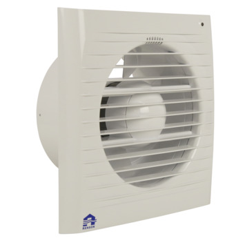 Ventileer ruimtes tot 15m² zoals toilet, badkamer en keuken met deze mechanische ventilator 7502 ME van Renson. De witte ventilator, met een diameter van 100 mm, beschikt over een timer en lichtsensor. De ventilator kan worden aan- of uitgeschakeld met een schakelaar maar kan ook zonder schakelaar geïnstalleerd worden. Na het uitschakelen, zal de ventilator nog de ingestelde tijd (tussen 15 sec en 45 min) nadraaien. De ventilator heeft tenslotte een verbruik van 14 W, een geluidsniveau van 35 dB en een IP waarde IP24.