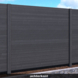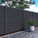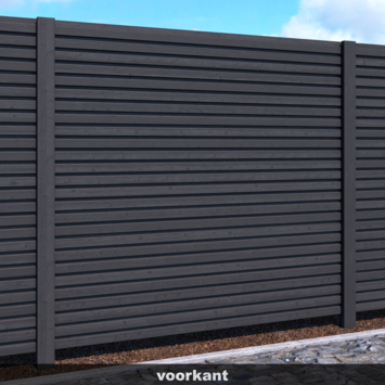 Deze zelfbouwplank heeft een lengte van ongeveer 180 cm, een breedte van 14,5 cm en een dikte van 2,8 cm. Gemaakt van geïmpregneerd vurenhout en afgewerkt met een antracietkleurige spray, biedt het rhombusprofiel een oplossing voor het maken van afscheidingen. Door de tand- en groefverbindingen kunnen de planken eenvoudig tussen sleufpalen worden geschoven. De afscheiding bestaat uit een lattenscherm aan de voorzijde en een dichte plankenschutting aan de achterkant.