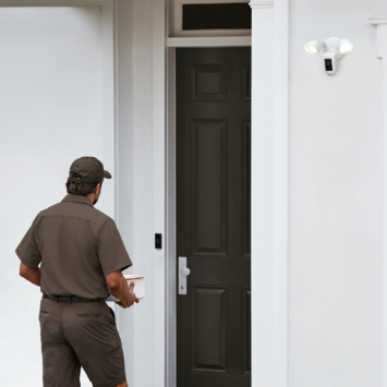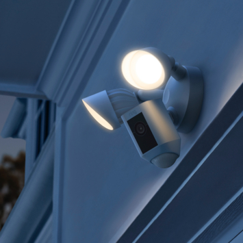 Zodra je Floodlight Cam beweging waarneemt krijg je een melding op je telefoon, tablet, laptop en/of computer. De camera detecteert automatisch beweging en begint automatisch met opnemen. Je kunt live de beelden bekijken wanneer je een bewegingsmelding ontvangt. Net zoals de bekendere Ring video deurbellen, heeft de Ring Floodlight Cam ingebouwde luidsprekers en een microfoon voor twee-weg communicatie met bezoekers. Je kan zelfs de 110dB sirene laten horen en het alarm aanzetten, zodat iedereen in de buurt hoort dat er iets aan de hand is. Je kunt deze slimme beveiligingscamera bedienen via de Ring app.