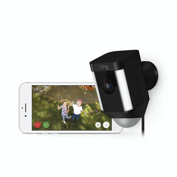 Zodra je Spotlight Cam beweging waarneemt krijg je een melding op je telefoon, tablet, laptop en/of computer. De camera detecteert automatisch beweging en begint automatisch met opnemen. Je kunt live de beelden bekijken wanneer je een bewegingsmelding ontvangt. Net zoals de bekendere Ring video deurbellen, heeft de Ring Spotlight Cam ingebouwde luidsprekers en een microfoon voor twee-weg communicatie met bezoekers. Je kan zelfs de 110dB sirene laten horen en het alarm aanzetten, zodat iedereen in de buurt hoort dat er iets aan de hand is. Je kunt deze slimme beveiligingscamera bedienen via de Ring app.