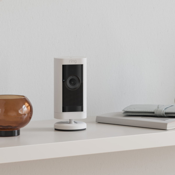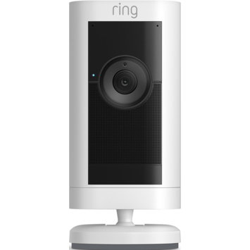 Ring Stick Up Cam Pro Battery Wit: Veelzijdige beveiligingscamera voor buiten met 1080p HDR-video, 3D-bewegingsdetectie en zicht vanuit vogelperspectief Professionele beveiliging, voor binnen of buiten. Voeg buitenshuis beveiliging toe met de veelzijdige Pro-versie van de beveiligingscamera voor buiten. Houd je terras in de gaten met 3D-bewegingsdetectie en nachtzicht in kleur, of houd op afstand een oogje in het zeil met HDR-video en verbeterde tweerichtingsspraak.