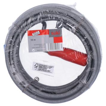 Deze ontstoppingsveer met een lengte van 10m is ideaal gereedschap voor het ontstoppen van afvoerleidingen van keukens, wastafels en toiletten. De ontstoppingsveer is gemaakt van staal en voorzien van een zwengel met handvat waarmee je de veer makkelijk hanteert. Daarnaast heeft de ontstoppingsveer van 10m een klauw die de verstopping van de afvoerleiding gemakkelijk losmaakt. Tip: draag latex of nitril werkhandschoenen tijdens het werken met de 10m lange ontstoppingsveer.