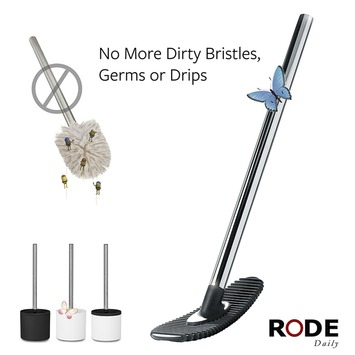 Ook altijd zo'n hekel aan nat toiletpapier wat tussen je reguliere toiletborstel blijft zitten. Of die smerige restjes die door de witte borstelkop extra goed zichtbaar blijven. Deze Rode Bath Daily toiletborsel is gemaakt van siliconen en is daarmee meteen bacterie afstotend. Daarnaast is de anders gevormde borstel enorm flexibel. Zo kun je de moeilijkste randjes bereiken zonder dat er toiletpapier of andere vuildeeltjes tussen blijven hangen. De deeltjes die onverhoopt toch blijven hangen aan de borstel, kunnen eenvoudig worden afgespoeld. Naast deze fantastische unieke borstel zit er ook een bijpassende toiletborstelhouder bij en is verkrijgbaar in zwart, wit en zwart/wit. LET OP: dit is geen toiletborstel, maar heeft wel dezelfde functie. Deze Rode Bath Toiletborstelhouder Daily Zwart is veel hygiënischer en eenvoudiger te gebruiken.