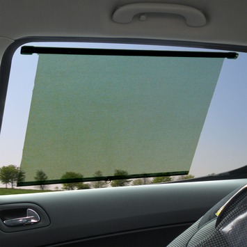 Zwart polyester doek met zuignapbevestiging of haakbevestiging. Veschermt uw kind tegen schadelijke zonnestralen. Met beveiligd rolmechanisme. 2 stuks x 45cm.