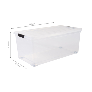 De New Carry Stocker van Iris Ohyama heeft een eenvoudig maar krachtig ontwerp. De stevige deksel zorgt voor een goede afsluiting en is voorzien van clipsluitingen, de box is nestbaar en stapelbaar. Het transparante materiaal maakt het gemakkelijk om te vinden wat u zoekt, omdat de inhoud snel kan worden geïdentificeerd. Dit assortiment opbergdozen biedt u de mogelijkheid om alle huishoudelijke artikelen op te slaan zoals: speelgoed, kantoorartikelen, kleding en andere accessoires. Door de wieltjes aan de onderkant is deze box ook makkelijk te verplaatsen wanneer er zwaardere spullen in zitten.