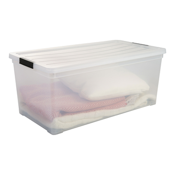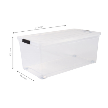 De New Carry Stocker van Iris Ohyama heeft een eenvoudig maar krachtig ontwerp. De stevige deksel zorgt voor een goede afsluiting en is voorzien van clipsluitingen, de box is nestbaar en stapelbaar. Het transparante materiaal maakt het gemakkelijk om te vinden wat u zoekt, omdat de inhoud snel kan worden geïdentificeerd. Dit assortiment opbergdozen biedt u de mogelijkheid om alle huishoudelijke artikelen op te slaan zoals: speelgoed, kantoorartikelen, kleding en andere accessoires. Door de wieltjes aan de onderkant is deze box ook makkelijk te verplaatsen wanneer er zwaardere spullen in zitten