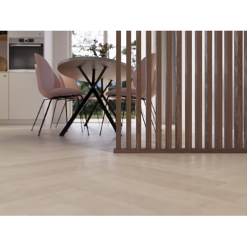 Een roomdivider bestaat uit drie onderdelen: profielen, spijlen en montagetape. De profielen vormen het raamwerk en houden de spijlen op hun plaats. Door de spijlen in de uitsparingen van de profielen te plaatsen, ontstaat een stevige constructie zonder zichtbare bevestiging. Deze rechte uitvoering zorgt ervoor dat de lamellen haaks op de vloer staan, wat de wand een rustige en evenwichtige uitstraling geeft.