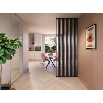 Met deze onderdelen bouw je eenvoudig een stijlvolle open wand waarmee je een kamer verdeelt, zonder dat het gesloten of zwaar oogt.