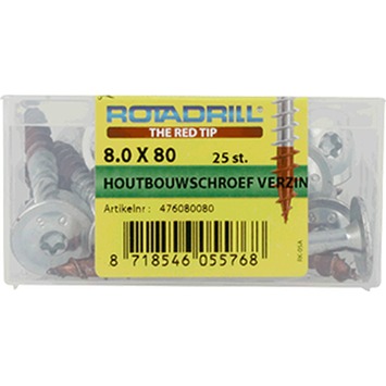 Rotadrill houtbouwschroef T40 verzinkt 8x80 mm 25 stuks
