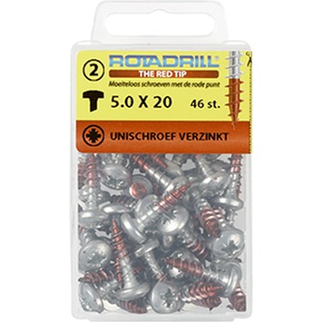 Rotadrill schroef universeel cilinderkop PZ2 verzinkt 5x20 mm 46 stuks