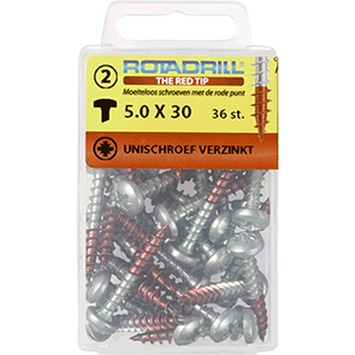 Rotadrill schroef universeel cilinderkop PZ2 verzinkt 5x30 mm 36 stuks