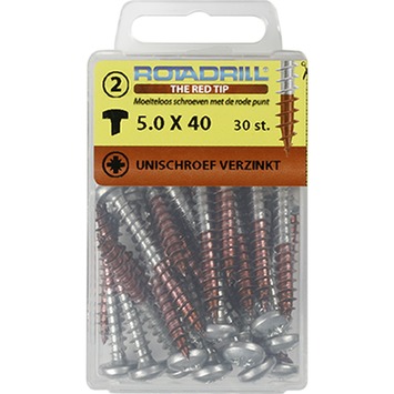 Rotadrill schroef universeel cilinderkop PZ2 verzinkt 5x40 mm 30 stuks