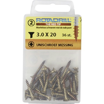 Rotadrill schroef universeel platkop PZ1 messing 3x20 mm 36 stuks6.99