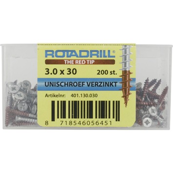Rotadrill schroef universeel platkop PZ1 verzinkt 3x30 mm 200 stuks8.99