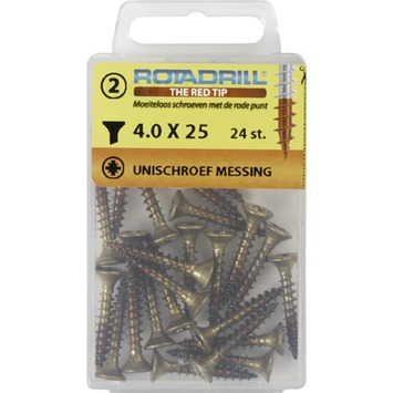 Rotadrill schroef universeel platkop PZ2 messing 4x25 mm 24 stuks6.99