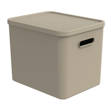 Deze trendy opbergbox is praktisch en stijlvol tegelijk. Gemaakt van 100% gerecycled plastic en volledig recyclebaar, is hij stevig, milieuvriendelijk en perfect voor het opbergen van spullen in huis, kantoor of kinderkamer.