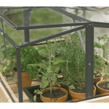 Met de Parsley Planter small kweek je jouw eigen groenten of kruiden op een beschutte plek, zelfs als het buiten nog flink fris is. Dankzij het veiligheidsglas van de kweekkas van 4 mm dik blijven je planten goed beschermd én heb je altijd zicht op de groei. Het slimme ontwerp bevat verstelbare klepramen waarmee je zelf het klimaat binnen de broeikas regelt. Of je nu net gezaaid hebt of al uitlopers ziet, je past het eenvoudig aan. De ramen zijn bovendien afsluitbaar met stevige vleugelbouten. De Parsley Planter broeikas wordt geleverd als handig bouwpakket en zet je in korte tijd in elkaar. Je plaatst ‘m direct op de grond, op een houten frame of op een bijpassende kweekbak. Dat maakt ‘m flexibel én stevig. Een mooie oplossing voor op een balkon of een kleine tuin.