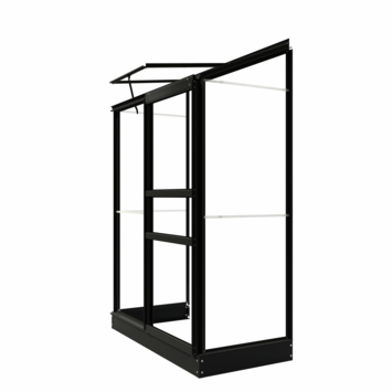 De Emma I muurkas van Royal Well is jouw ideale tuinmaatje! Deze zwarte kas is perfect voor wie niet veel ruimte heeft, maar wel graag verse kruiden en groenten kweekt. Met een binnenoppervlakte van 0,91 m² kun je gemakkelijk een klein kweekproject starten. Gemaakt van robuust aluminium en voorzien van 3 mm veiligheidsglas, biedt deze kas zowel stevigheid als veiligheid voor je planten. Het stijlvolle lessenaarsdak en de schuifdeur zorgen voor zowel functionaliteit als design. Zet hem tegen een stevige muur en geniet van het kweken in je eigen tuin of op je balkon. Het dakraam met uitzetijzer zorgt voor de nodige ventilatie, zodat je planten altijd in de beste omstandigheden groeien. Of je nu een beginner of een ervaren kweker bent, de Emma I muurkas biedt alles wat je nodig hebt voor je eigen verse oogst!
