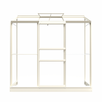 Met de Royal Well Emma II muurkas in wit haal je een perfecte oplossing in huis voor het kweken van planten, zelfs als je niet veel ruimte hebt. Deze kas is ideaal voor op het balkon of tegen een muur in de tuin. Het biedt een binnenruimte van 1,34 m², wat genoeg is voor een mooie verzameling kruiden en groenten. Het stevige aluminium frame en de 3 mm veiligheidsglas beschermen je gewassen, terwijl je geniet van het zonlicht dat naar binnen komt. Het slimme lessenaarsdak en het dakraam met uitzetijzer zorgen voor een goede ventilatie, zodat je planten altijd de frisse lucht krijgen die ze nodig hebben. De stevige fundering zorgt ervoor dat de kas stabiel staat, zonder het risico op omvallen. Met een nokhoogte van 182 cm heb je bovendien voldoende ruimte om zelf in de kas te werken. De Emma II is een uitstekende keuze voor iedere tuinier, ongeacht of je net begint of al ervaring hebt.