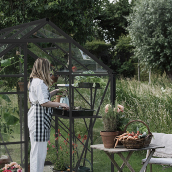 De Royal Well Kate II kweekkas is een uitstekende keuze voor iedereen die graag met planten werkt. Met een binnenoppervlakte van 4,83 m² heb je genoeg ruimte om verschillende bloemen, groenten of kruiden te kweken. Het stevige aluminium frame en het 3 mm veiligheidsglas beschermen je planten tegen het weer. De zwarte afwerking zorgt ervoor dat de kas perfect in je tuin past. Het zadeldak en de schuifdeur maken het gemakkelijk om in en uit de kas te gaan. Vergeet niet dat het dakraam zorgt voor de nodige ventilatie, waardoor je planten in de ideale omgeving kunnen groeien. De geïntegreerde fundering maakt het installeren van de kas eenvoudig, en de regenpijpen helpen je om regenwater op te vangen. Of je nu een beginner of een ervaren kweker bent, de Kate II maakt tuinieren een stuk gemakkelijker!