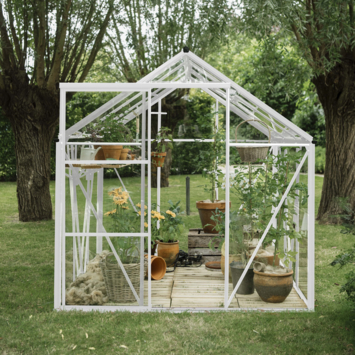 De Royal Well Kate V kweekkas in wit is alles wat je nodig hebt voor het creëren van je eigen plantenparadijs. Met een ruime binnenoppervlakte van 8,33 m² kun je volop kruiden, groenten en bloemen kweken. De stevige aluminium en veiligheidsglas constructie zorgt voor bescherming en duurzaamheid, terwijl de geïntegreerde fundering het opzetten van de kas een stuk makkelijker maakt. De nokhoogte van 215 cm biedt je de ruimte om comfortabel in de kas te werken. Het Full Options pakket bevat alles wat je nodig hebt om direct aan de slag te gaan, van schappen tot pothouders en een automatische raamopener. Met deze kas kun je volop genieten van je tuinieren – praktisch, stijlvol en klaar voor gebruik!