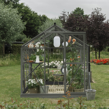 De Royal Well Mary IV kweekkas in een frisse groen/grijze kleur is een prachtige aanvulling voor elke tuin. Met een ruime binnenoppervlakte van 8,91 m² krijg je alle ruimte om je planten te laten bloeien. Het 3 mm dikke veiligheidsglas beschermt je planten tegen het weer, terwijl het stevige aluminium frame voor duurzaamheid zorgt zonder zwaar te zijn. Het zadeldak zorgt niet alleen voor een stijlvolle uitstraling, maar draagt ook bij aan een goede luchtcirculatie. De automatische raamopener houdt de temperatuur in de kas altijd op peil. Dankzij het Full Options pakket krijg je een geïntegreerd schap, een tafel, pothouders, containers en zwarte tomatenspiralen, zodat je meteen aan de slag kunt. De stevige fundering maakt deze kas geschikt voor verschillende ondergronden, en met een nokhoogte van 245 cm werk je er met gemak in. De Royal Well Mary IV is een perfecte combinatie van stijl en functionaliteit voor je tuin!