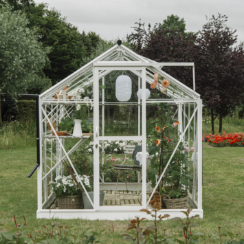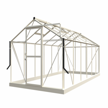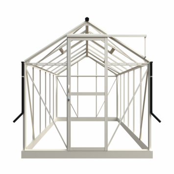 Met de Royal Well Mary IV kweekkas in het wit voeg je zowel schoonheid als functionaliteit toe aan je tuin. De kas biedt maar liefst 8,91 m² ruimte om je favoriete planten, groenten of bloemen te kweken. Het strakke ontwerp met een zadeldak zorgt voor een stijlvolle uitstraling en bevordert een goede luchtcirculatie. Het 3 mm dikke veiligheidsglas beschermt je planten tegen schadelijke weersomstandigheden, terwijl het stevige aluminium frame zorgt voor stabiliteit en duurzaamheid. De kas is uitgerust met vier ramen en een automatische raamopener, zodat je altijd de juiste temperatuur kunt handhaven. De schuifdeur met haakslot maakt het eenvoudig om toegang te krijgen tot je kas, terwijl het ook extra veiligheid biedt. Dankzij het Full Options pakket krijg je alles wat je nodig hebt om meteen te beginnen, van een geïntegreerd schap en een tafel tot handige pothouders. De stevige fundering maakt de kas geschikt voor zowel verharde als onverharde ondergronden. De Royal Well Mary IV is de perfecte kas om een groene oase in je tuin te creëren!