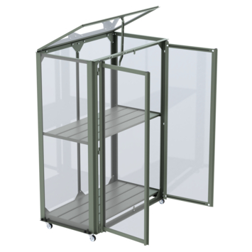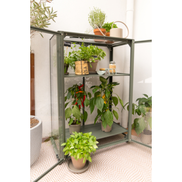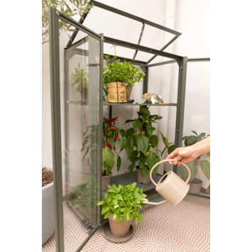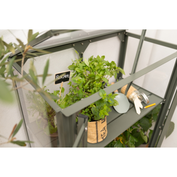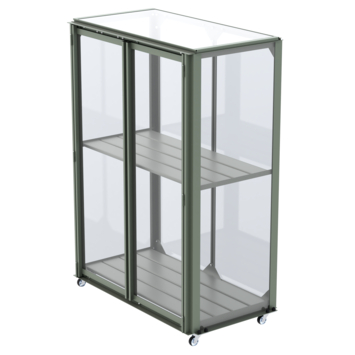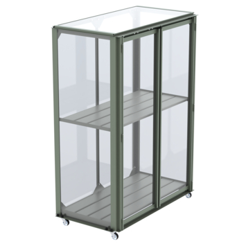 Ontdek de magie van kweken met de Urban Grower medium. Creëer een oase van versheid binnen handbereik. Of je nu wilt kweken op je balkon, terras of in de tuin; Royal Well laat jouw droom werkelijkheid worden. Kweek kruiden en lage groenten in potten en kweekbakken, overwinter planten of stel de Urban Grower medium op voor decoratief gebruik. Al vanaf het vroege voorjaar kan deze kweekkast in gebruik worden genomen. De Urban Grower medium beschermt gewassen tegen wind, hagel, nachtvorst en ongedierte. Deze kweekkast heeft een aluminium frame met grijsgroene coating (RAL 7009) dat rust uitstraalt en perfect past in iedere tuin. De kweekkast heeft een transparante polycarbonaat afdichting (3 mm), dat niet gevoelig is voor breuk en geheel veilig is in gebruik. Het dakraam aan de bovenzijde kan in verschillende standen worden gezet voor het luchten van de planten. Verplaats de kweekkast moeiteloos door de handige wieltjes aan de onderzijde, inclusief rem. De kweekkast heeft twee draaideuren; één draaideur is 97x33,5 cm en klemt met magneten vast. Wij leveren de Urban Grower medium inclusief bevestigingsmateriaal, met behulp van de montagehandleiding bouw je hem zo op.