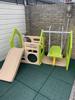 Laat je kinderen veilig spelen op deze Rubber terrastegel groen 50x50 cm. De tegels zijn waterdoorlatend dankzij de speciale onderkant met noppen. Hierdoor vloeit water gemakkelijk weg. Rubber terrastegels breken een val tot een valhoogte van 0,9 meter. Hierdoor zijn deze Rubber terrastegels geschikt om bijvoorbeeld onder speeltoestellen te leggen. De antisliplaag voorkomt uitglijden wanneer de tegels nat zijn geworden. Maar je kunt de tegels ook gebruiken voor je tuin, balkon of dakterras. De tegels zijn namelijk niet alleen waterdoorlatend, maar ook eenvoudig op maat te snijden. Kortom, van deze groene rubberen tegels kan je veel plezier hebben. Verbindingpinnen zijn los verkrijgbaar en worden niet meegeleverd.