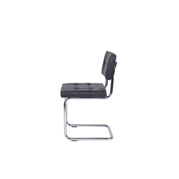 Eetkamerstoel Ruby staat garant voor veel zitcomfort. De eetkamerstoelen die geleverd worden als set van 2 stuks, zijn uitermate geschikt om aan te schuiven aan uw eetkamertafel. Door de zwarte kleur past de eetkamerstoel in vrijwel ieder interieur. Eetkamerstoel Ruby heeft een afmeting van 85x46x46 en een zithoogte van 48cm. Zowel het zitgedeelte als de rugleuning van de eetkamerstoel is ergonomisch vormgegeven. Op de stoelen kunt u dan ook gezellig natafelen. De moderne stoel heeft een metalen buisframe gecombineerd met een PU lederen zitting en rugleuning. Dit maakt de stoel stabiel en robuust. Kortom, optimaal zitcomfort in uw eetkamer creëert u met Eetkamerstoel Ruby. Kleur: zwart.