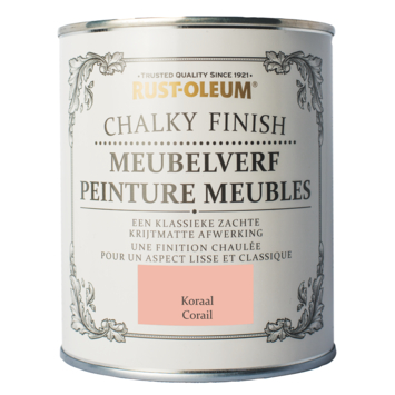 Rust-Oleum Meubelverf Koraal 750 ml is perfect om meubels een nieuwe uitstraling te geven. De verf mag rechtstreeks op hout (blank of geverfd), baksteen, tegel, pleister of elk ander voorbehandeld hard oppervlak worden aangebracht. Creëer een vintage look door twee lagen in contrasterende kleuren aan te brengen en deze zacht op te schuren wanneer de verf droog is. Werk voor het ultieme resultaat de Rust-Oleum Meubelverf Koraal 750 ml af met een beschermende laag Rust-Oleum Meubelwas of Rust-Oleum Meubelvernis mat.
