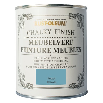 Rust-Oleum Meubelverf Petrol 750 ml is perfect om meubels een nieuwe uitstraling te geven. De verf mag rechtstreeks op hout (blank of geverfd), baksteen, tegel, pleister of elk ander voorbehandeld hard oppervlak worden aangebracht. Creëer een vintage look door twee lagen in contrasterende kleuren aan te brengen en deze zacht op te schuren wanneer de verf droog is. Werk voor het ultieme resultaat de Rust-Oleum Meubelverf Petrol 750 ml af met een beschermende laag Rust-Oleum Meubelwas of Rust-Oleum Meubelvernis mat.