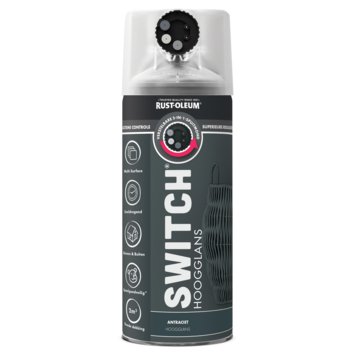 Met de Rust-Oleum Switch spuitlak hoogglans antraciet 400 ml werk je zoals jij dat wilt. De spuitmond heeft vijf standen waarmee je zelf bepaalt hoe de lak uit de bus komt. Kies uit hoog volume, standaard, laag volume, of een horizontale of verticale straal. Zo pas je de spuitvorm aan op wat je schildert, van grote oppervlakken tot kleine hoekjes. Door één simpele draai wissel je van stand. Dat scheelt tijd én voorkomt fouten tijdens het lakken.